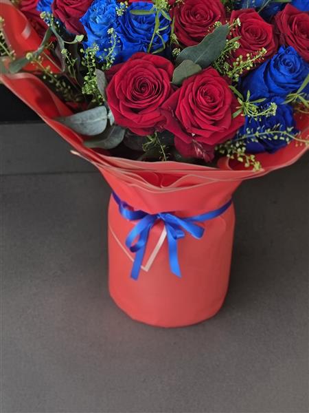 A dozen red Roses with a dozen of Royal Blue Roses (Dyed)